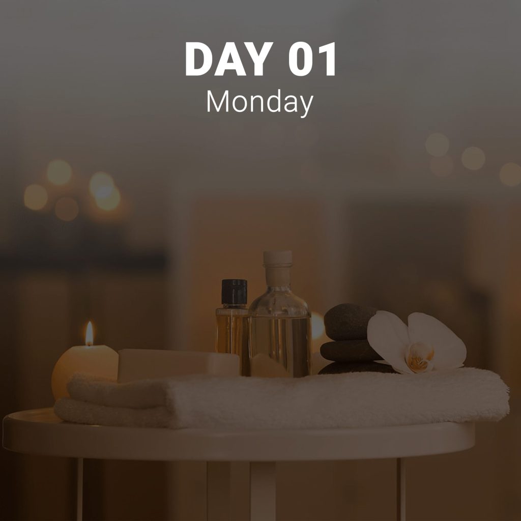 (Spa Tour, Foot soak, Foot works, Signature Massage, (7 steps applied), Tea, Meditation, Self-care class)